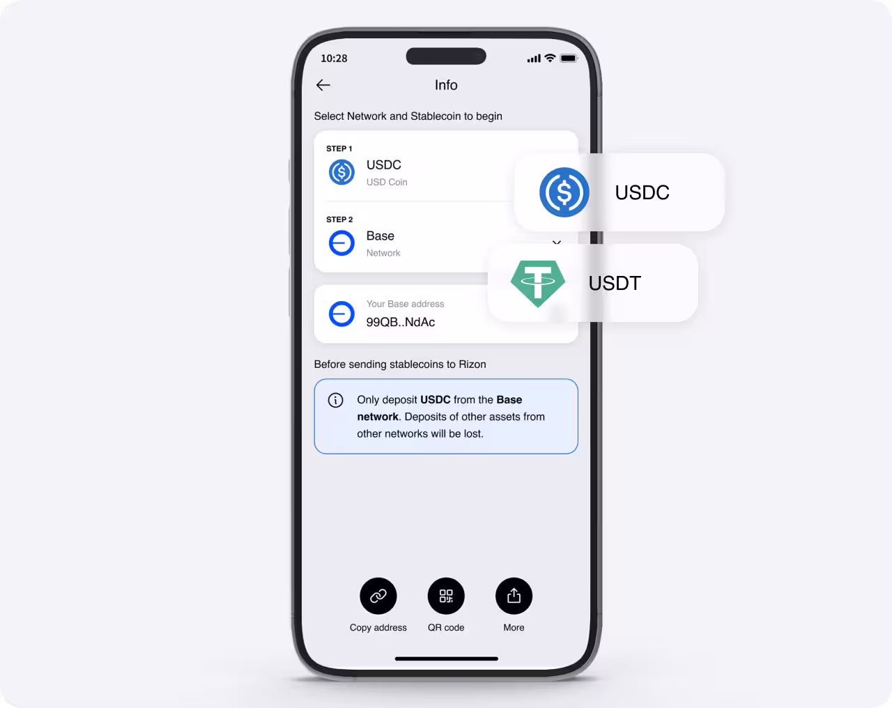 Send stablecoins to your Rizon address and watch them land in minutes. It's fast, global, perfect for traders or stablecoin holders.