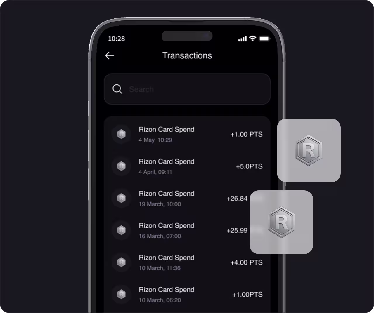 Earn up to 2% on every purchase, redeem to your Rizon balance and spend.