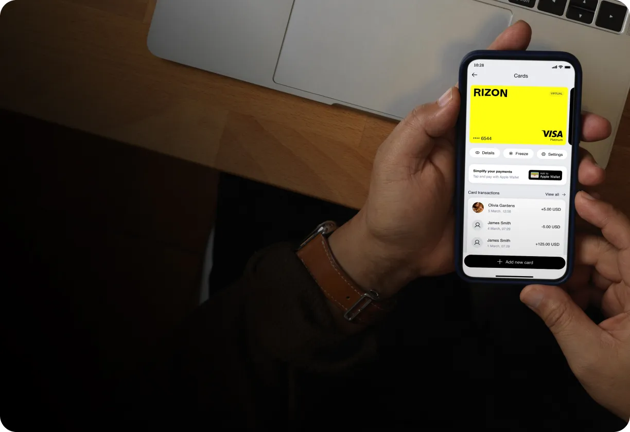 Limits and fees vary by rail and region. Rizon shows all costs upfront before you confirm.